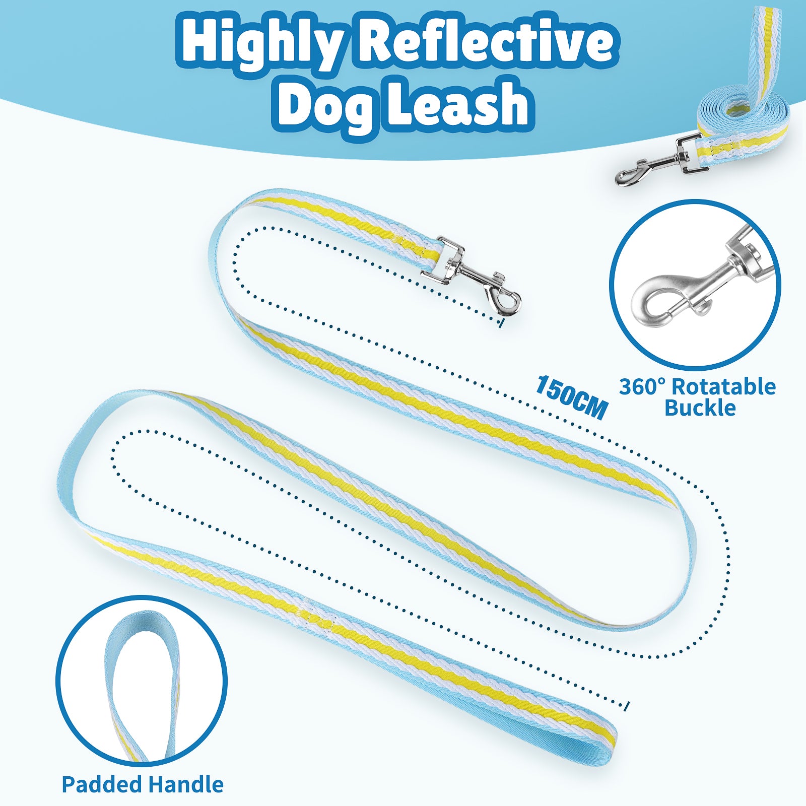 🌀 360° Swivel Leash – Tangle-free clip + padded handle for comfortable grip