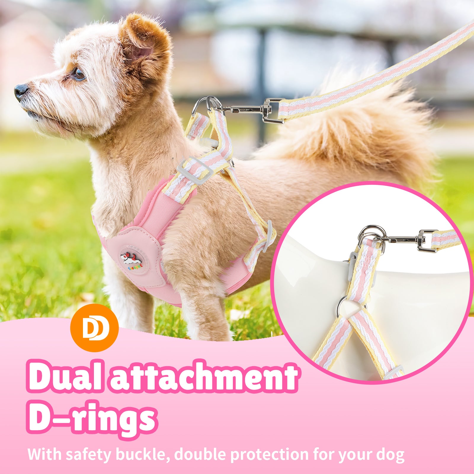 Give your small or medium dog the perfect balance of comfort and control with our no-pull harness and matching leash.